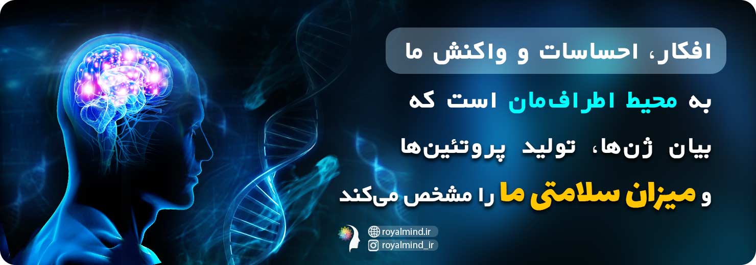 بنابراین این افکار، احساسات و واکنش ما به محیط اطرافمان است که بیان ژنها، تولید پروتئینها و میزان سلامتی ما را مشخص می کند.
