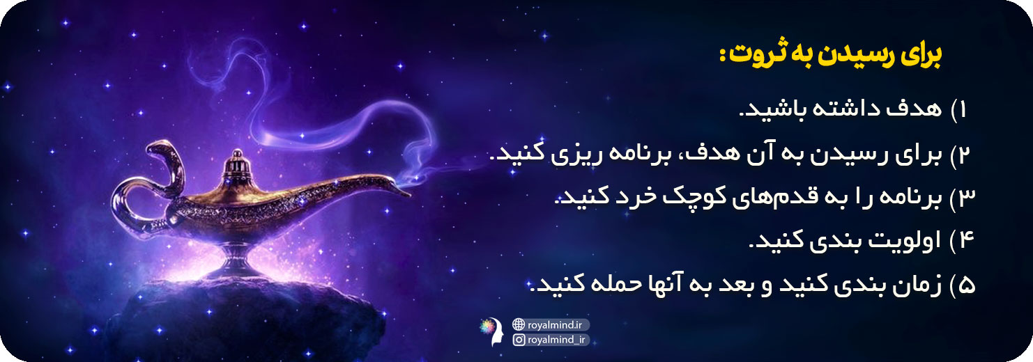 برای دستیابی به ثروت، بهبود وضعیت مالی و ایجاد ذهنیت رفاه و فراوانی پیشنهاد ما به شما دورهی فوقالعاده "میراث باب پراکتور" (کلیک کنید)، میباشد. این دوره برای تمام کسانی است که کتاب بیندیشید و ثروتمند شوید را مطالعه کردهاند، اما هنوز نتوانسته اند کدی را که در صفحات این کتاب در میان جملات پنهان شده است، پیدا کنند.