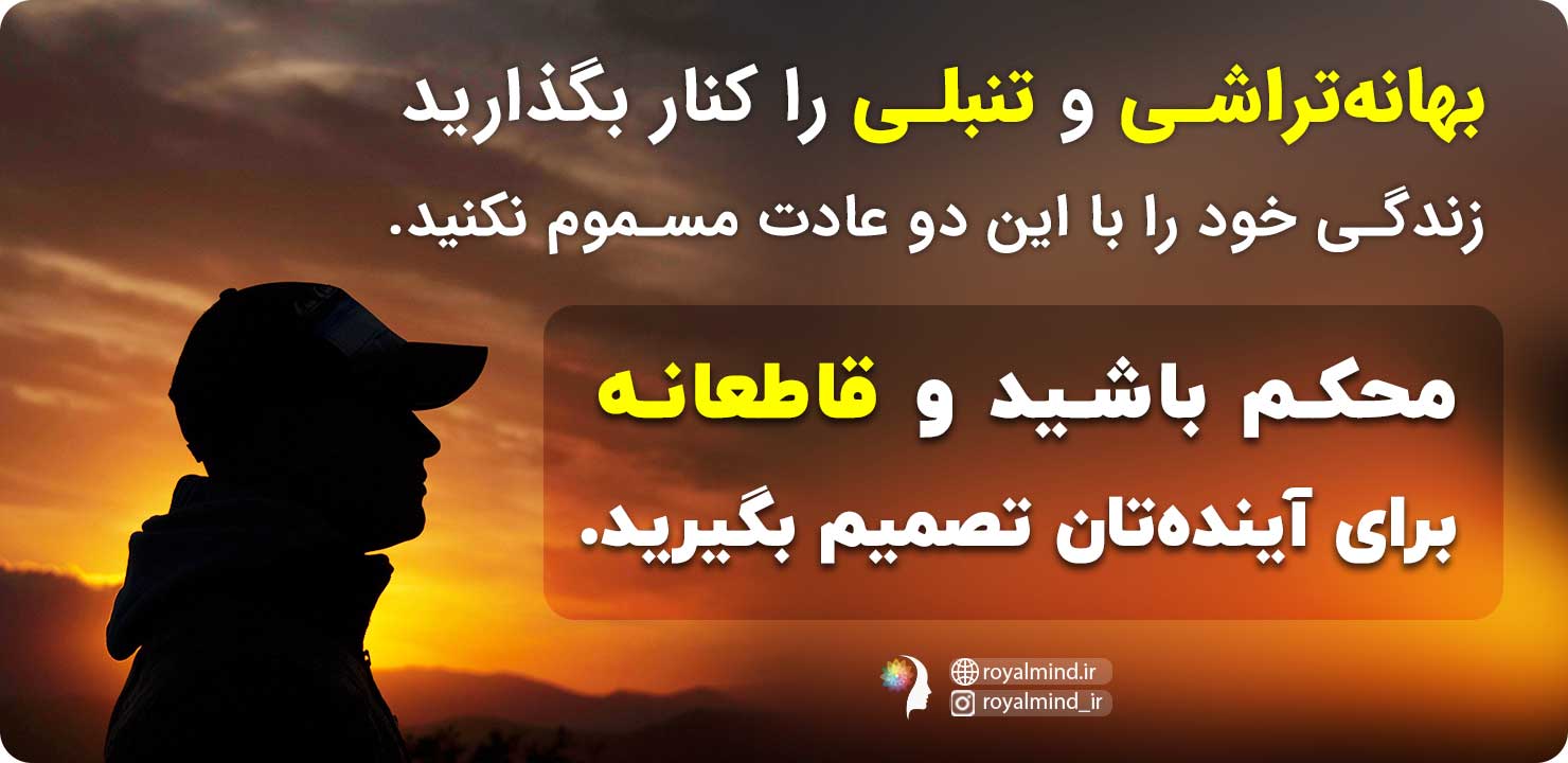 چقدر در زندگی ازین دست جملات استفاده میکنید؟ چقدر کارهایتان را پشتگوش میاندازید و تصمیم قاطعانه و سریع نمیگیرید؟ چقدر بهانه میآورید؟