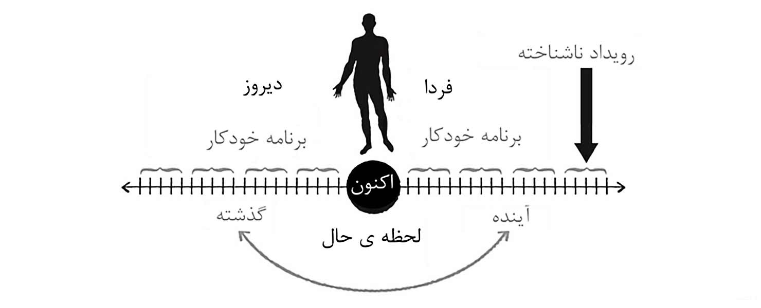 چگونه است که ما بیشتر اوقات روزمان مدام درباره گذشته و آینده فکر میکنیم و هیچگاه در لحظه نیستیم؟