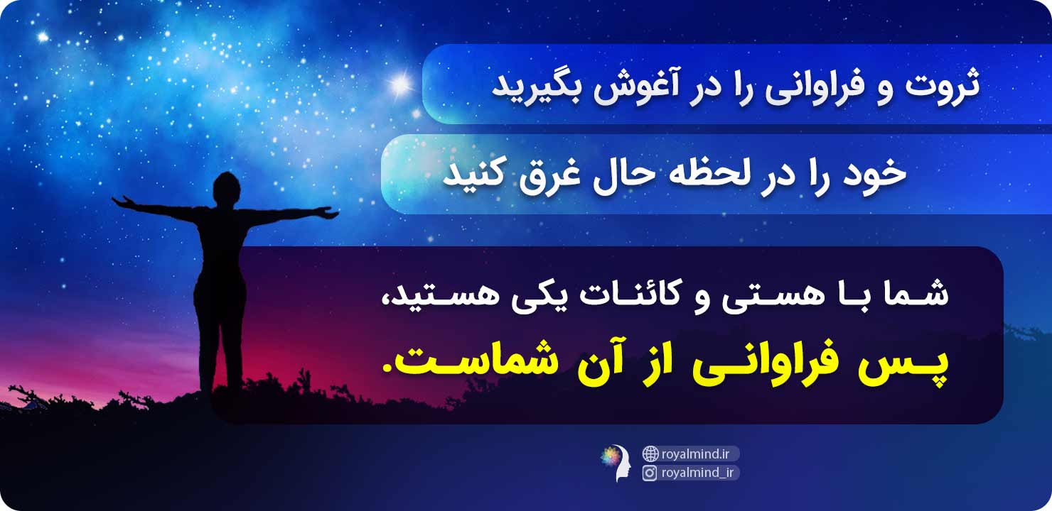 خود را در لحظه حال غرق کنید. شما با هستی و کائنات یکی هستید، پس فراوانی از آن شماست.