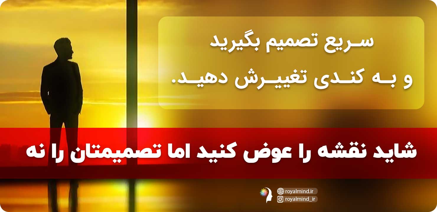 که همه آنها از ویژگی تصمیمگیری سریع، برخودار بودهاند. همه آنها بر تصمیمات خود پافشاری کردهاند و به سختی تصمیم خود را تغییر میدهند. تصمیمگیری یکی از اصول موفقیت است. افراد موفق به سرعت تصمیم میگیرند و به کندی تصمیمشان را تغییر میدهند. و افراد ناموفق به کندی تصمیم میگیرند و به سرعت و مکرراً تغییرش میدهند. میتوانید توانایی خود را در زمینه تصممگیری سریع بعد از خواندن این مطالب محک بزنید.